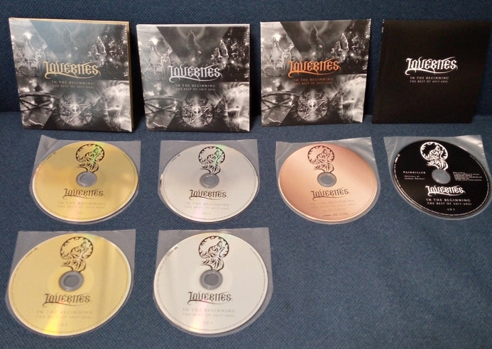The Lovebites In the beginning The Best Of 2017-2021 compilation album. Complete limited ultimate edition included 5 CD and a Bluray of Music Video collection.