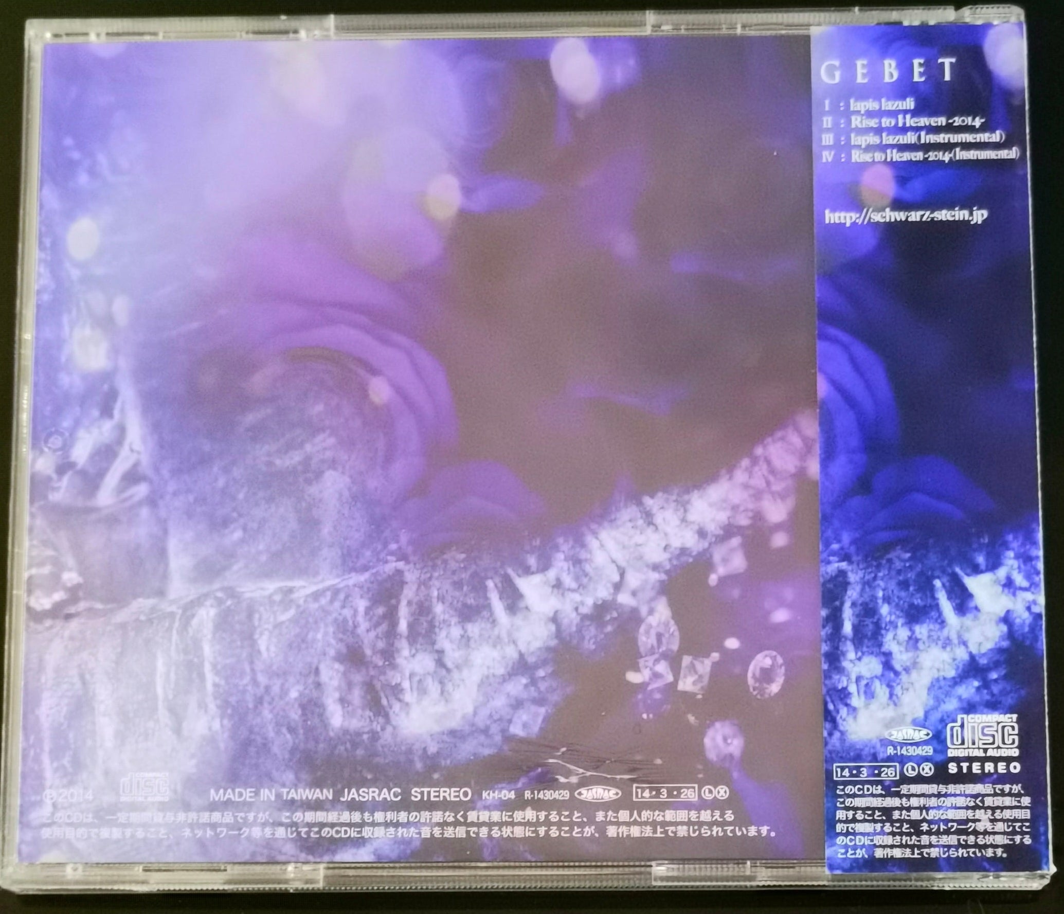 Single from Schwarz Stein, released by トロイメライ; electronic production with dark ambient elements, issued in Japan on March 26, 2014.